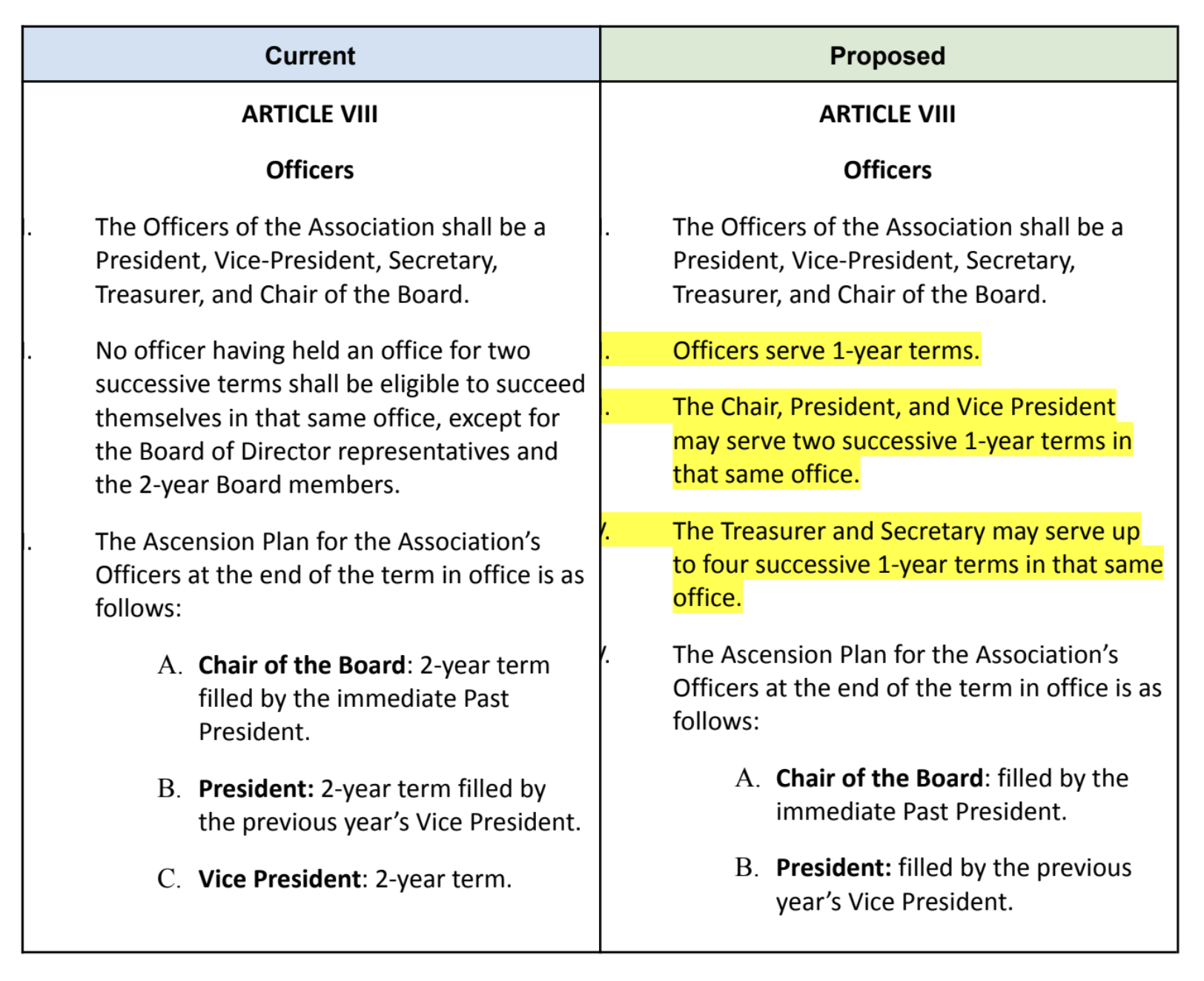 Members of the Association will be asked to vote to approve the proposed changes to the Bylaws at the January 7, 2026 during the Annual