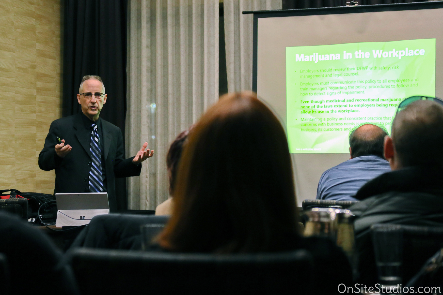 The main takeaway from Lister’s talk is that companies should have a drug policy in place and communicate it to employees. Lister recommends that a written drug-free workplace policy (DFWP) be included in your company manual.