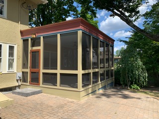 This outdoor addition by Feinmann completed this colonial. “Nothing says New England like the timeless appeal of a porch to enjoy the Fall, Spring, and Summer seasons. Feinmann, Inc. built a 14×37 porch for a family of three in Newton, MA, extending the footprint of their Colonial home by adding two main living areas; a sitting area and dining area.”