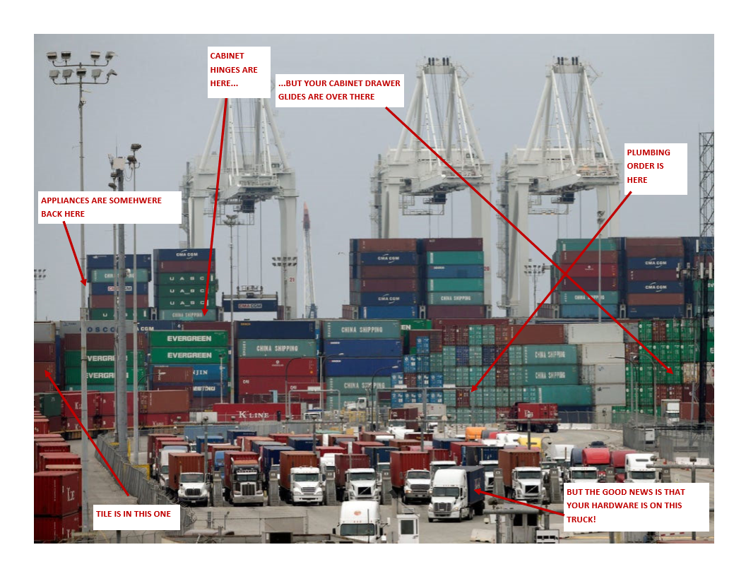 Perhaps one of the biggest woes for remodelers these days is the long wait for appliances. Steve Sheinkopf, the head of Boston retailer Yale Appliance, told the Wall Street Journal that “he has lent out so many cheaper appliances to customers that he feels like he’s running a lending library. His staff has been berated by homeowners missing ovens and dishwashers. He said that he added ‘combat pay’ and threw ice-cream parties and free pizza to try to boost morale.”
