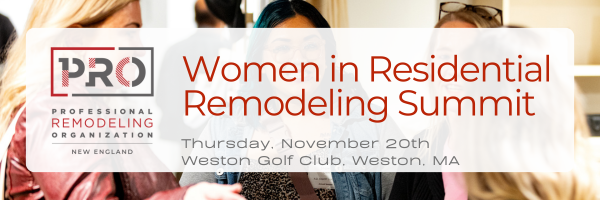 PRO New England’s Women in Residential Remodeling is led and curated by Michelle Glassburn of Lavallee Systems, Beezee Honan of Designer Bath, and Allison Iantosca of FH Perry, Builder. If you are interested in helping shape the WiRR agenda, please reach out.
